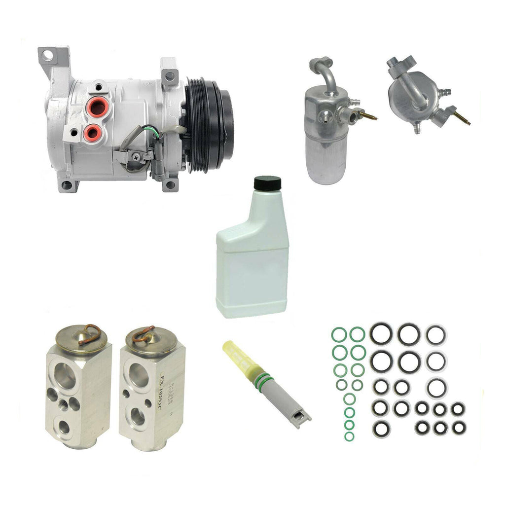 • Kit includes: Reman A/C Compressor (With Rear A/C) ), New Receiver Drier RD 10915C P-Nut Fitting at 3 O'clock, New Big Gray Orifice Tube EX 33410C, New Rear Expansion Valve EX 10293C Pag 46 Oil & O-Ring Set