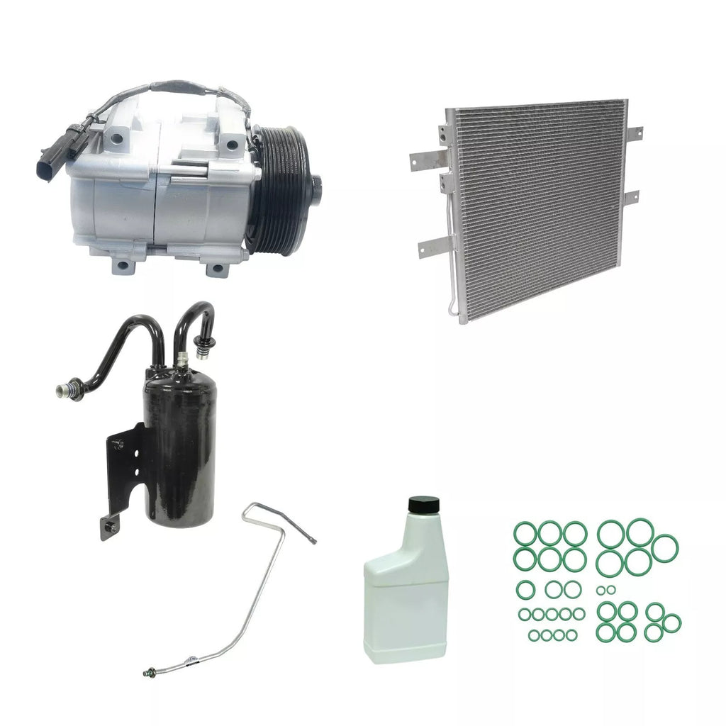 - Kit includes: Reman AC Compressor, New AC Condenser CN 3265PFC, New Accumulator RD 10892C, New Liquid Line w/ Orifice Tube HA 10094C, New Set O-Ring & Pag 46 Oil. With 215mm mounting centers; with Metal Tank Intercooler; with Straight Lower Fittings